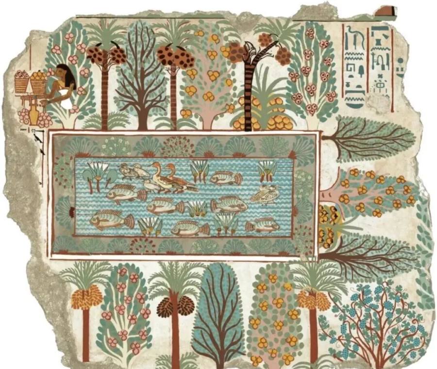 古埃及壁画残片,内巴蒙花园