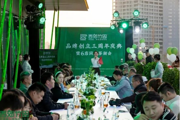 11 月 9 日,“西郊竹园品牌创立三周年暨六店同庆答谢会” 在郑州金融岛盛大启幕。来自郑州市与信阳市两地餐饮协会领导、行业专家、合作伙伴、媒体嘉宾及品牌各门店的客户代表齐聚一堂,在茶香与竹韵的环绕中,共同回顾这家信阳菜品牌的三年成长路,见证信阳饮食文化在中原大地的鲜活传播。