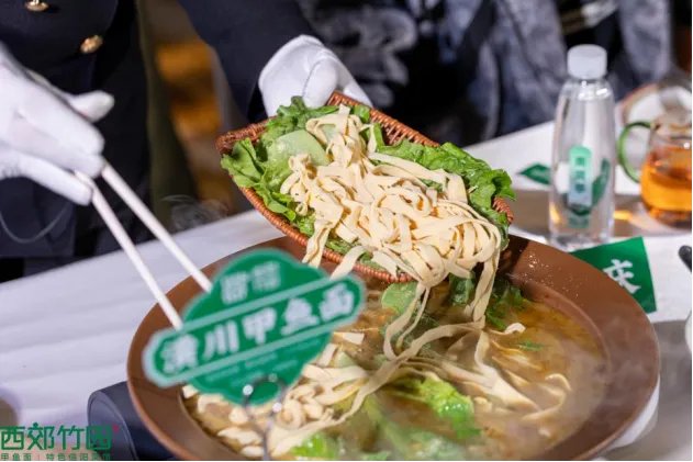 在传承中创新,是西郊竹园打动食客的关键。活动现场,提及招牌菜 “潢川甲鱼面”,工作人员自豪地展示着食材溯源信息:“每一只甲鱼都是来自潢川的国家地理标志产品,生长周期至少 3 年,肉质紧实鲜嫩。” 据介绍,这道结合河南人 “爱面” 饮食习惯研发的菜品,自上市以来销量持续攀升,三年累计售出超 80000 只,不少食客专程为这一口而来,成为品牌 “圈粉” 的核心菜品。解忠杰坦言:“我们想做的不只是好吃的菜,更是想让大家通过这碗面,了解潢川的甲鱼文化,了解信阳的饮食故事。”