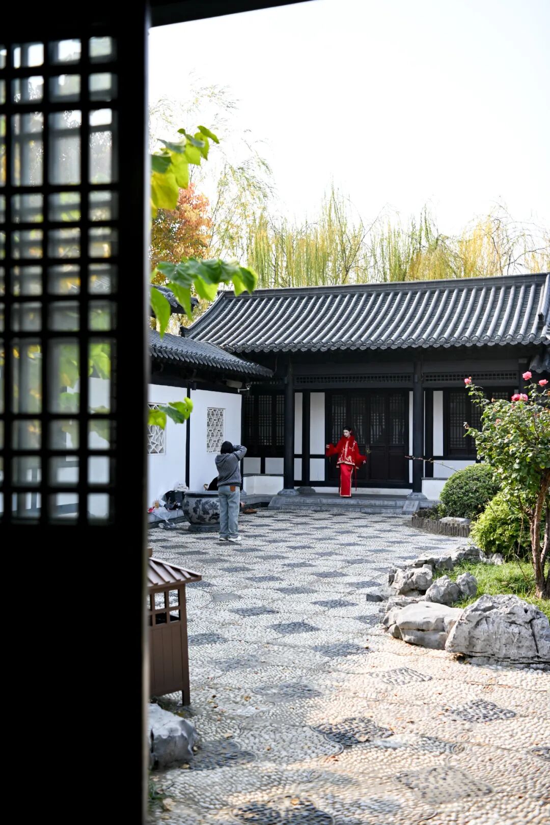穿一件飘逸褙子,在馥香馆前与假山瀑布同框,或蹲在鹅卵石铺就的“松鹤延年”图案旁,让月季作前景定格瞬间。作为婚纱摄影常客的秘境,这里的每处亭台轩榭都经过时光打磨,随手一拍都是古风大片质感。
