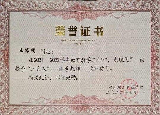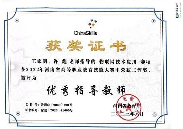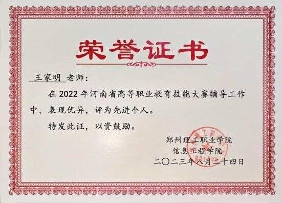 2025年,王家明被认定为河南省职业教育中级“双师型”教师,这一荣誉不仅是对他教学能力与实践经验的双重肯定,更是对他未来在职业教育领域发挥更大作用的期许。他用自己的实际行动,诠释了“双师型”教师的深刻内涵,即既具备扎实的理论知识,又拥有丰富的实践经验,能够为学生提供全方位、多层次的学习指导。