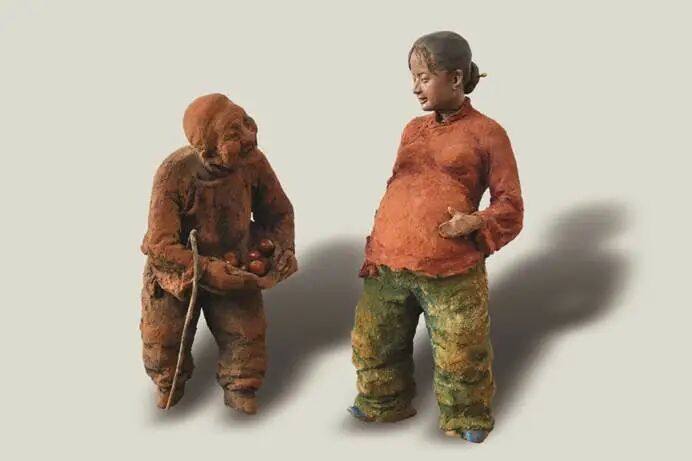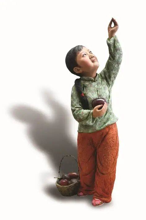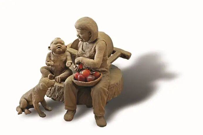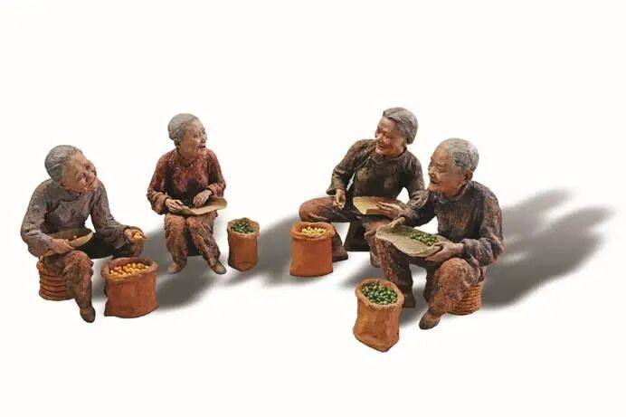 于是,著名泥塑艺术家“泥石刘”——刘贵忠,以秋天的收获季节为背景,创作一个个鲜活的人物,以不同的表情,不同的劳作,不同的企盼,收获各种“累累果实”,反映丰收带来的喜悦,充满浓郁的生活气息……