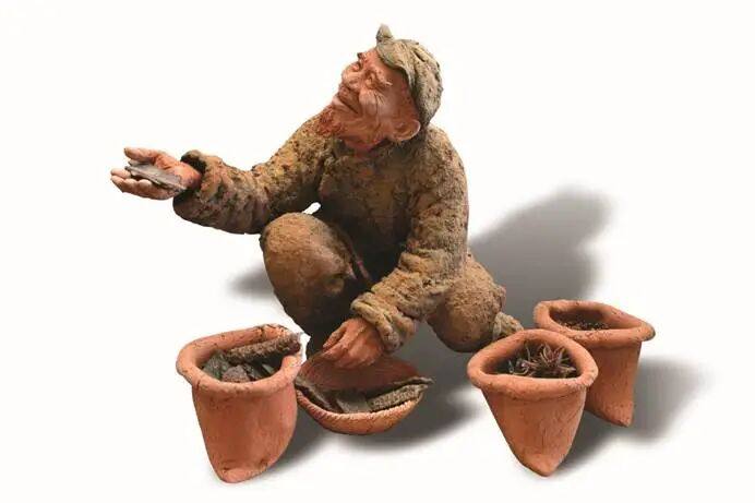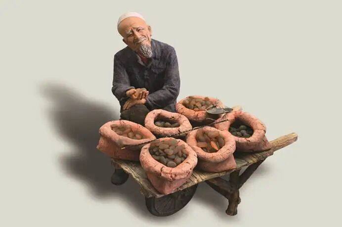 著名泥塑艺术家“泥石刘”——刘贵忠看到后,不禁发出惊叹:“老百姓炖肉离不开桂皮,而这样以假乱真的‘桂皮’,又有谁见过?”于是,他经过巧妙地创作,展现一个《卖“桂皮”喽》的情景: