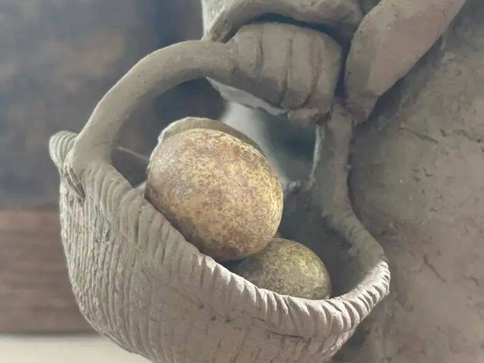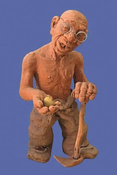 著名泥塑艺术家“泥石刘”——刘贵忠看到后,越看越像真的,越看越觉得不可思议。于是,他以一种冲动进行了创作,展现一个《“独粒花生”捧在手》的情景: