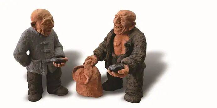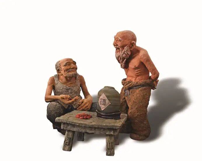 著名泥塑艺术家“泥石刘”——刘贵忠看到后,又看到一块卵石酷像“酒坛子”,一下子就想到民间用枸杞子泡酒,创作的冲动马上迸发出来,展现一个《用“枸杞子”泡酒》的情景: