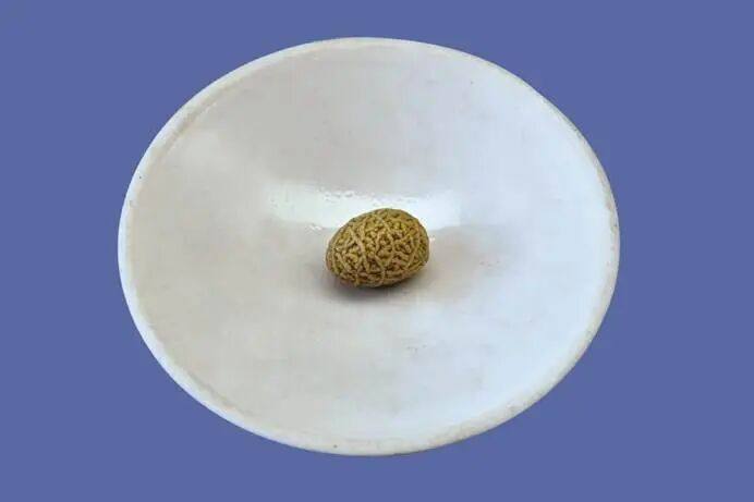 出自内蒙阿拉善盟大漠的天然形成风凌石,有一枚小小的石头,圆圆的、鼓鼓的、黄黄的,表面麻麻点点,就像坚硬的壳,这分明就是“独粒花生”呀!