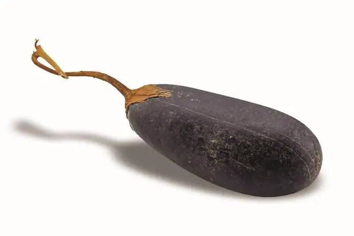 出自柳州市三江县河滩的一块天然形成“三江石”,呈黑紫色,又圆又长,头大尾小,尾部还有点歪,特别像一个“长茄子”。