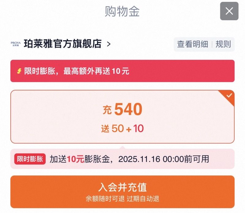 今年双11期间,品牌购物金充值可享9折甚至85折不等的购物金膨胀,并可与店铺红包、官方立减、消费券等叠加使用。