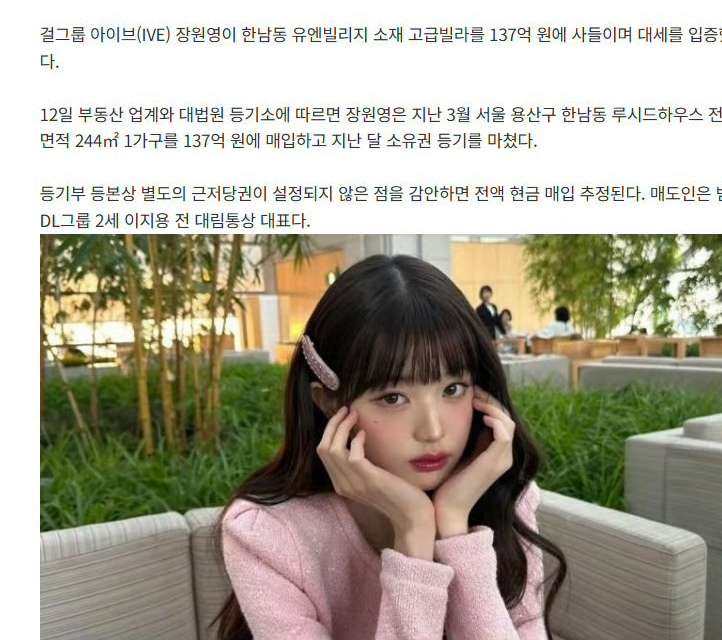 闻览焦点:一则“IVE成员张元英全款购入137亿韩元(约合人民币7000余万元)汉南洞别墅”的新闻,迅速引爆了中韩两国的社交媒体。这不仅是一桩简单的房产交易,更像一个浓缩了当下K-Pop产业生态与文化现象的符号性事件,引发了关于明星财富、年龄成就以及产业模式的广泛讨论。