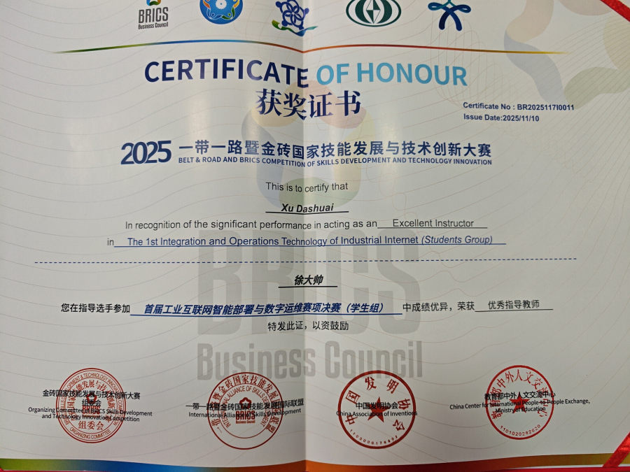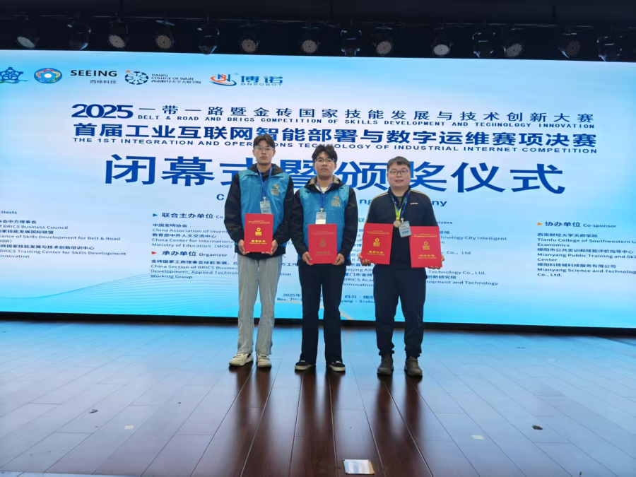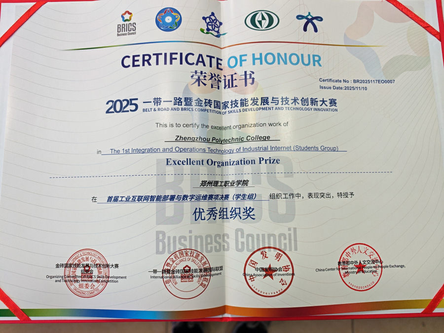 11月6日至10日,2025“一带一路”暨金砖国家技能发展与技术创新大赛首届工业互联网智能部署与数字运维赛项决赛在四川绵阳西南财经大学天府学院圆满落幕。来自金砖11个成员国的200余名技能精英同台竞技,郑州理工职业学院智能交通学院师生凭借过硬的专业素养与出色的实战能力斩获多项荣誉,充分展现了学校人才培养的丰硕成果与学子的青春风采。