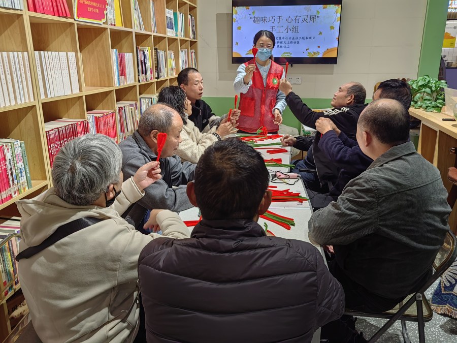 为进一步提升残疾人的动手能力与自我价值感,11月 13日下午,在郑州市民政局、郑州市养老事业发展中心(郑州市福利彩票发行中心)的支持下,德佑社工驻郑州市养老事业发展中心专业社工服务项目联合德化街街道民主路社区开展“趣味巧手 心有灵犀”残疾人手工小组第四节活动。