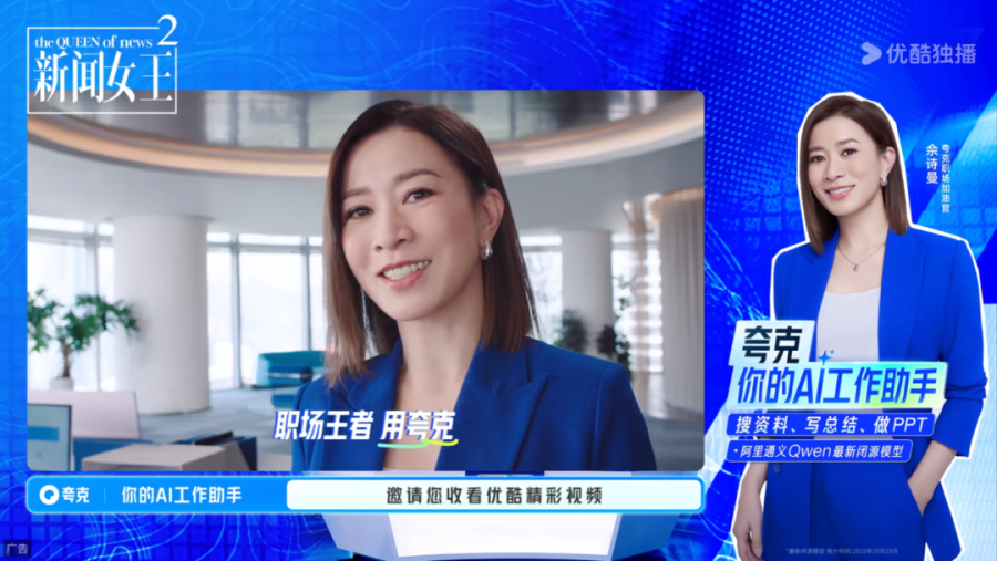 比如Man姐作为气场全开、carry全局的大女主,其雷厉风行的处事风格与天猫双十一大力补贴的果断魄力高度一致;而她出色的工作能力与高效的信息处理能力,也与夸克AI智能高效、精准响应的产品理念深度契合。