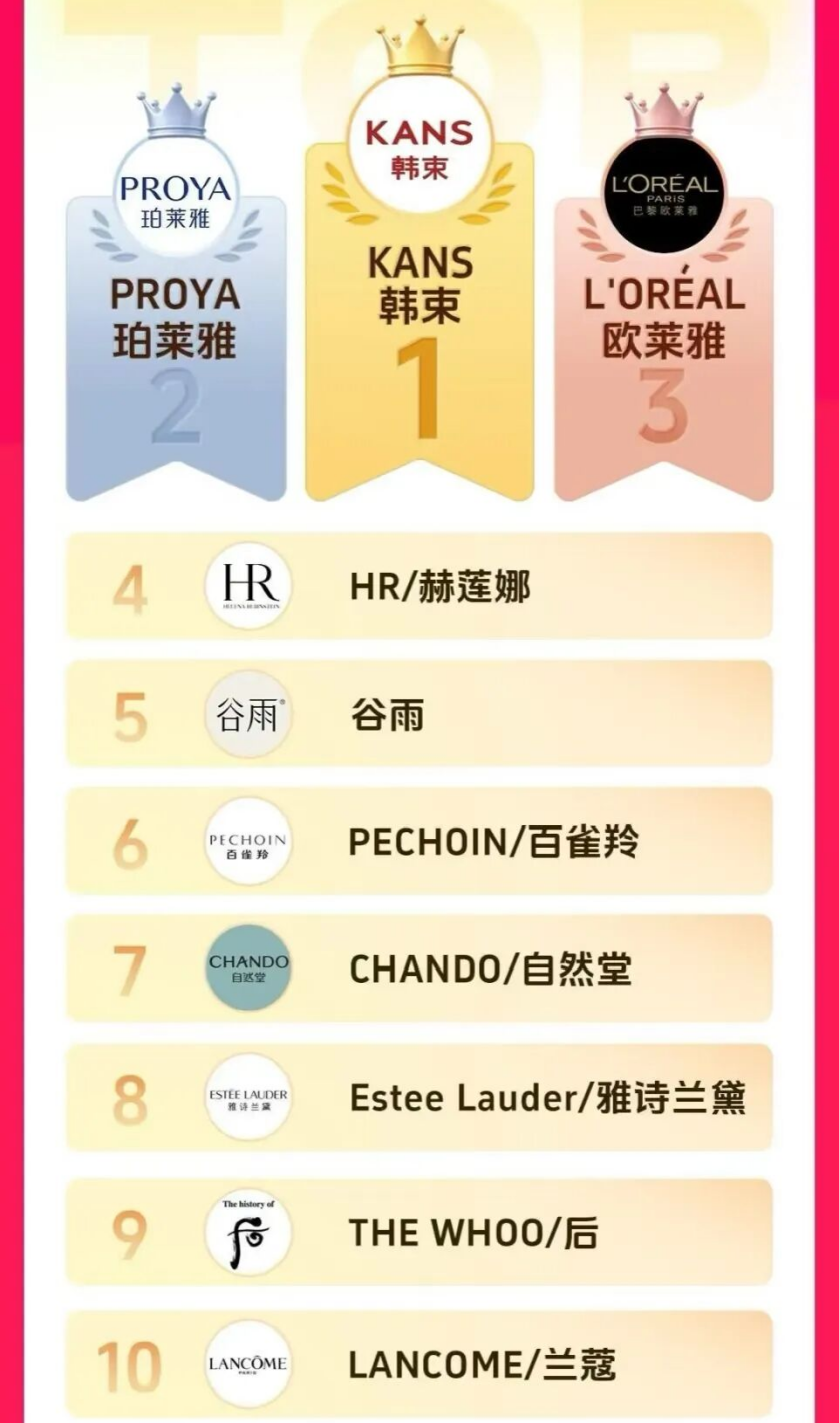 而在2022年,前三名均为国际品牌欧莱雅、雅诗兰黛和兰蔻,马太效应在这一赛道愈发突出。
