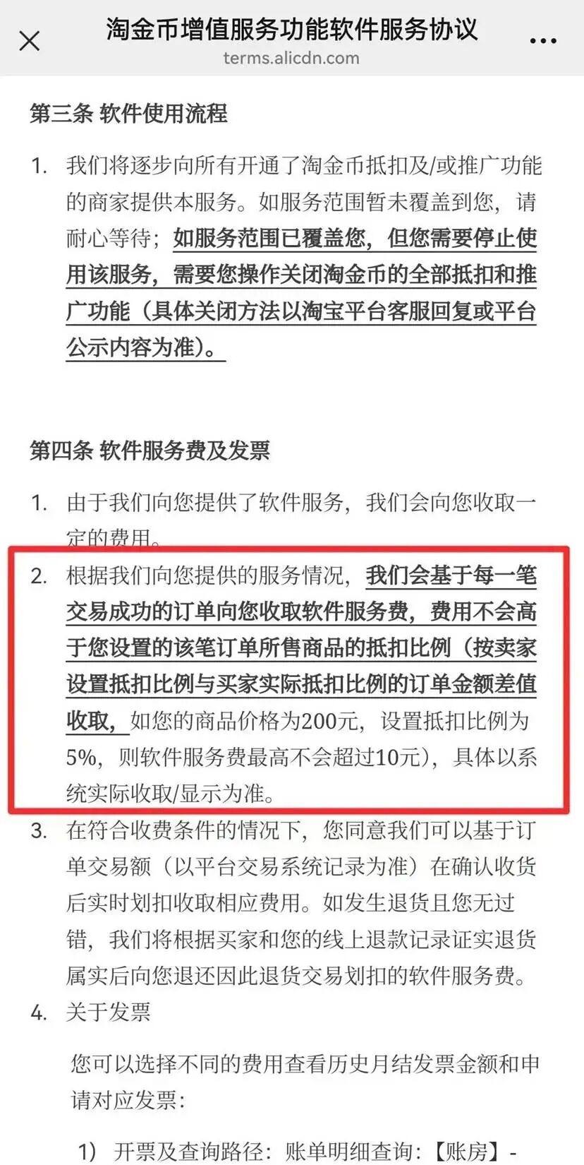 原本商家为用户提供的优惠额度,就这样变成了平台的“软件服务费”。根据这一新规,就算用户完全没有使用淘金币、一分钱没省,这笔服务费商家也要交,10%的金额就全给了平台。