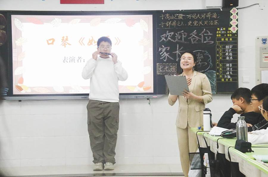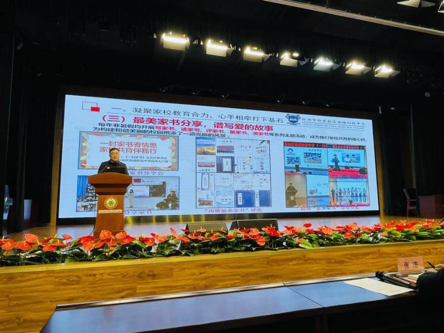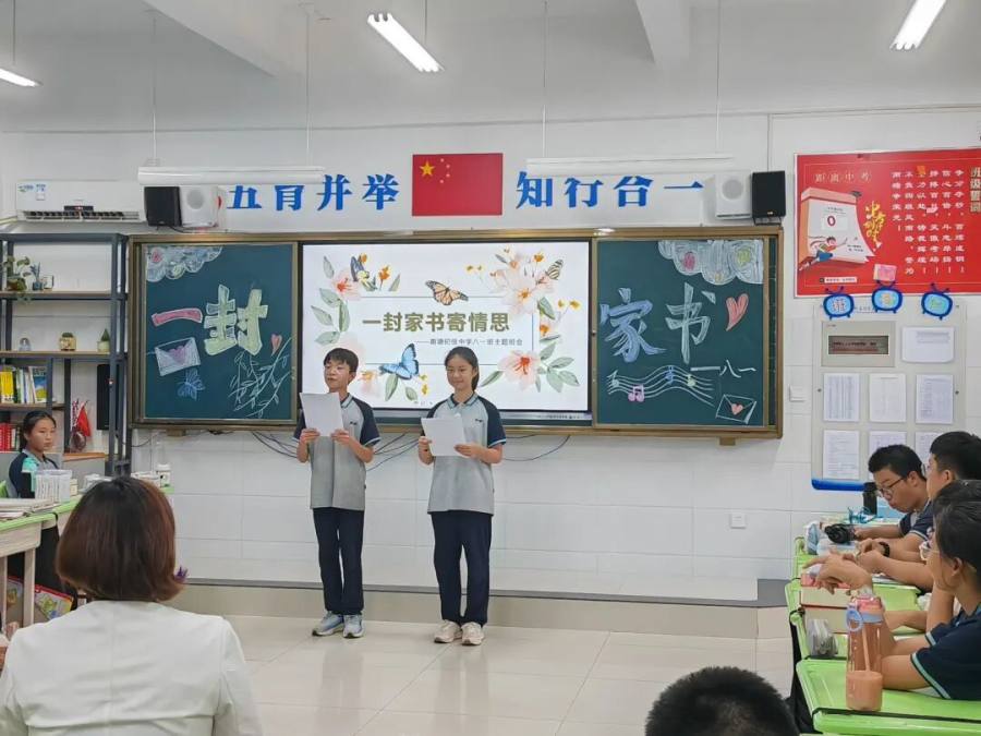 第六是拓展维度,以“一封家书”系列活动为载体,让家校共育从“能力提升”延伸至“精神传承”。每个学期,南塘初中都会发起“写家书、评家书、展家书、演家书”活动,从学生与家长层面的写家书,到班级层面的评选家书、展示家书,再到学校层面的演绎家书,亲子关系在一封封家书的撰写中悄然升温。八(2)班周龙娇同学告诉记者,曾经因为沉迷自己喜欢的画画,她与妈妈的“战争”几乎没停过;后来在班主任指导下,她将心里话写进信里,文字的温度打动了妈妈。周龙娇妈妈在回信中写道:“孩子,你知道吗?让你学习不是为了我们,而是让你自己过得更好,不想让你再走我们的老路……”“读妈妈的信,我掉泪了,也理解妈妈了。之后我们一起制订了学习和兴趣发展计划。”周龙娇说。接受采访时,八(1)班学生窦佳萱、王琨乔,八(6)班学生窦冰清、吴昱晓,都分享了与家长互写家书的温情故事。