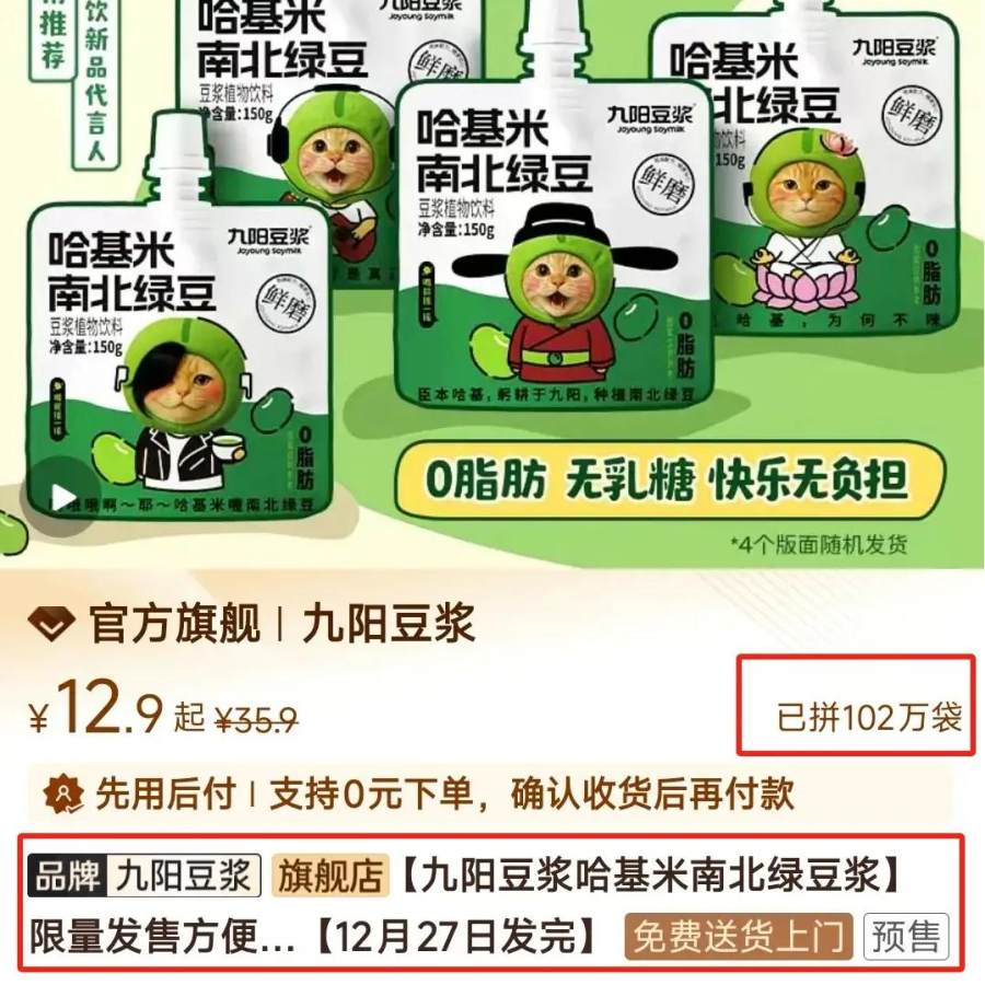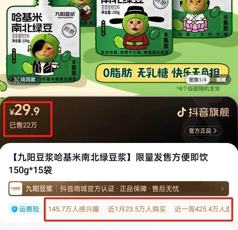 在九阳这款产品发布前,“哈基米南北绿豆”实际上已经成为某种认同感极强的亚文化了,热度丝毫不亚于当年的“贾君鹏你妈喊你回家吃饭”,是网络集体行为艺术的一个鲜明案例。