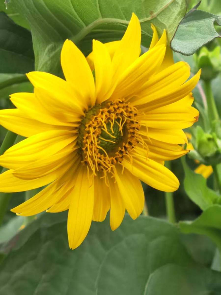 在资源圃最边缘的角落里,一株编号为“F1-7-33”的菊株,正傲然挺立。它的茎秆四方型,粗壮如竹,深绿色的叶片,长而宽又肥厚,闪烁着金属般的光泽。最令人惊叹的是,在接近零度的低温中,它的枝头顶着十几个饱满的花苞,其中一个已微微绽开,露出内里火焰般明艳的金黄色。
