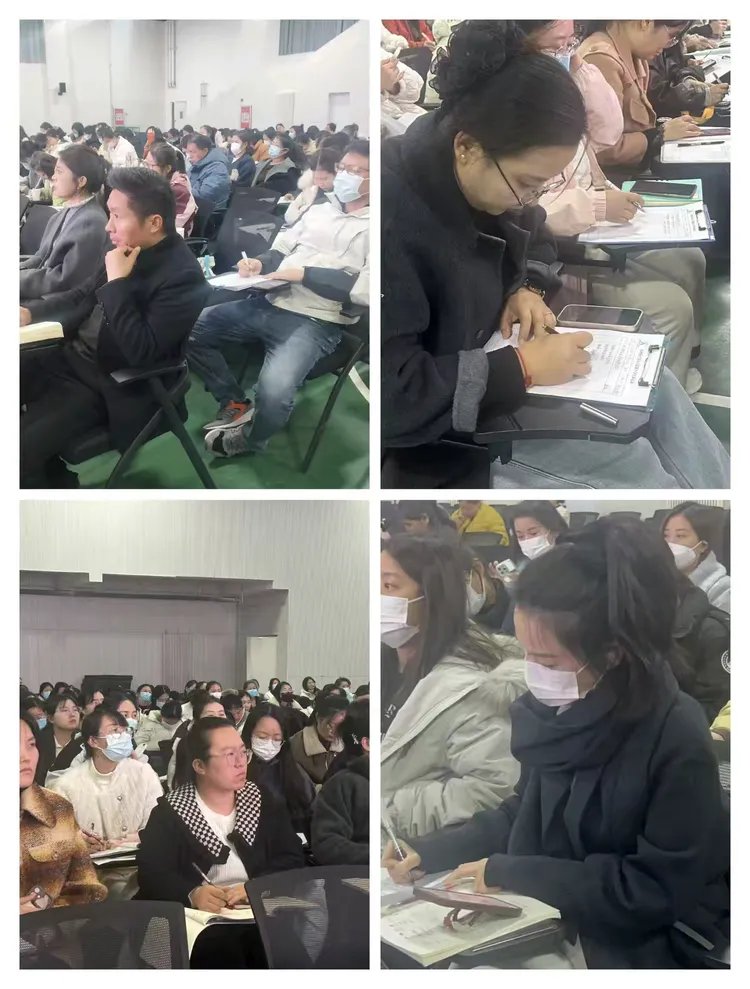 在天骄路小学科研课题专题培训的现场,教师们更是展现出了高度认真的态度。他们早早入场就座,提前准备好笔记本与笔。培训中,他们的目光紧紧追随讲解者,不放过任何细节,时而低头奋笔疾书记录要点,时而托腮沉思,思绪时刻紧跟培训的节奏,以饱满热情汲取知识养分。