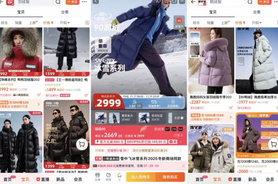 实体门店的情况同样不容乐观,越来越多消费者反馈,如今在商场里,千元以下几乎找不到绒量充足、品质过硬的羽绒服。“稍微像样点的款式,标价都在1500元以上,现在买件厚实点的国产羽绒服,也要花掉月薪的五分之一甚至更多。”