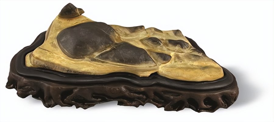 这块“吕梁石”为黄白色与黑色相间,展现了“山在虚无缥缈间”的景象:一片淡淡的黄白色,仿佛弥漫的云雾,十余座黑色的山峰从云雾中显露,有高有低,有大有小,有尖有平,隐隐约约,迷迷茫茫……这多像“山在虚无缥缈间”啊!