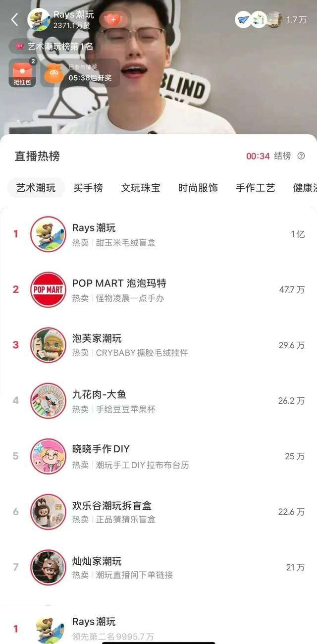 最近,一个名不见经传的潮玩经销商品牌「Rays潮玩」的小红书直播间,热度竟比泡泡玛特高200余倍,位列平台艺术潮玩品类热榜榜首。他们旗下一款名为「甜玉米」的全新产品开售24小时,总销售额破1108万元。即便产品出货期已经排至明年5月,仍有不少人愿意一遍遍点进拥挤的购买界面,等待上近十分钟才能支付成功。截止最新,该产品一共卖了近2000万。