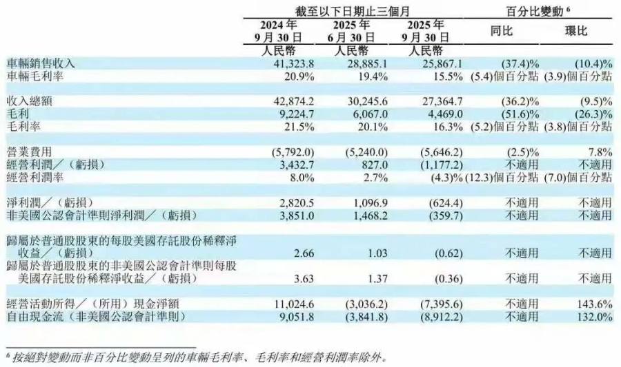 2025年11 月 26 日,理想汽车发布了截至 2025 年 9 月 30 日止季度的未经审计财务业绩。