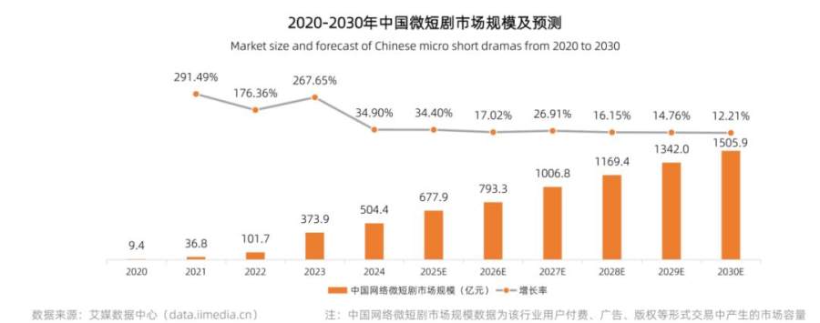在商业价值方面,艾媒咨询最新发布的《2025-2029年中国微短剧市场研究报告》数据显示,中国网络微短剧市场规模呈上升趋势,2025年中国微短剧市场规模预计将达677.9亿元,同比上升34.4%,2030年或将超1500亿元。