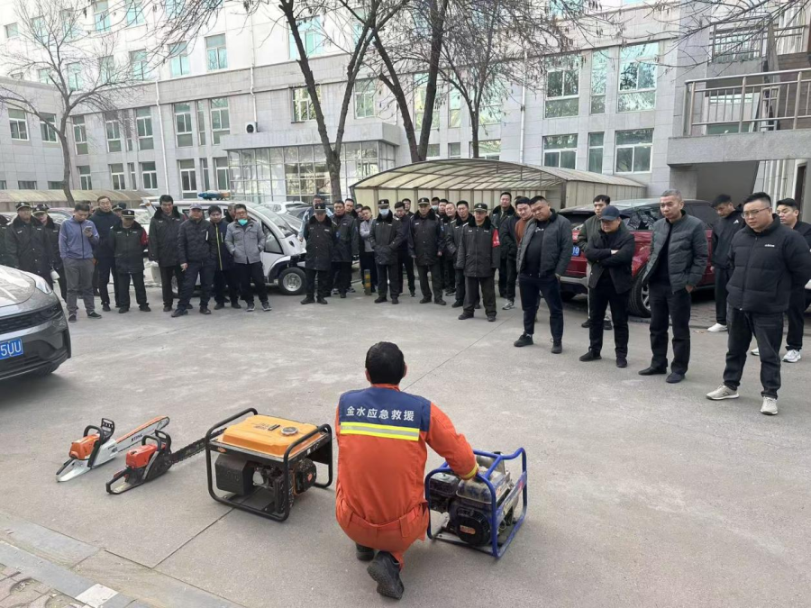培训采用“理论授课+实操演示”模式,内容兼具专业性与实用性。金水区应急救援大队工作人员通过PPT讲解,围绕五项核心内容系统授课:一是夯实地震基础认知,解读震源、震级等概念及分级标准;二是聚焦黄金自救72小时,明确多场景避险要点,传授自救生存技巧;三是讲解专业救援要点,强调互救禁忌并结合案例复盘实战经验;四是梳理日常防范清单,规范家庭应急包配置、建筑避震检查及社区演练流程;五是强化特殊场景应对,讲解夜间地震预警、次生火灾防范要点,倡导建立社区应急互助机制。理论授课后,室外同步开展实操教学,现场演示汽油链锯、汽油发电机等装备的操作规范与安全注意事项,助力参训人员掌握实操技能。