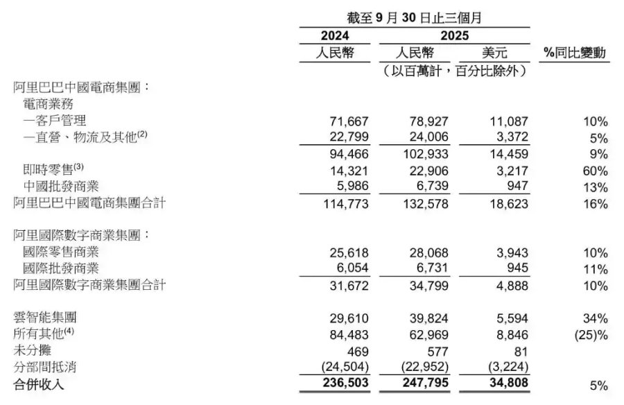 阿里巴巴三大核心业务板块呈现明显分化态势,既反映了公司在复杂市场环境中的经营韧性,更凸显了其在AI时代战略布局的初步成效。