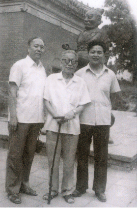 峻极峰嵩阳圣地 古灵山金壶洞天——张国臣向作家师陀(中)、河南大学中文系系主任刘增杰(左)介绍嵩山中岳庙文化(1985年7月)