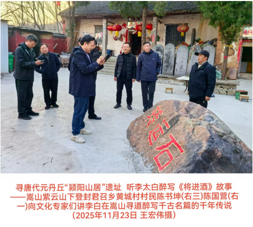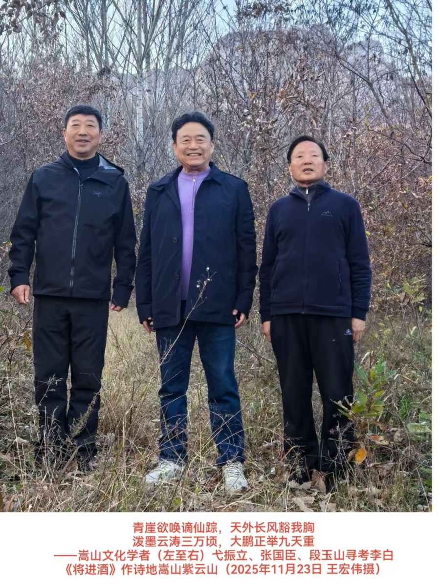 追寻诗仙嵩山足迹,探讨圣山文化之谜。2025年11月23日,应嵩山文化研究会名誉会长段玉山先生邀请,我与河南省政协社会和法制委副主任、文化专家弋振立教授等,专程前往考察元丹丘“颍阳山居”遗址。