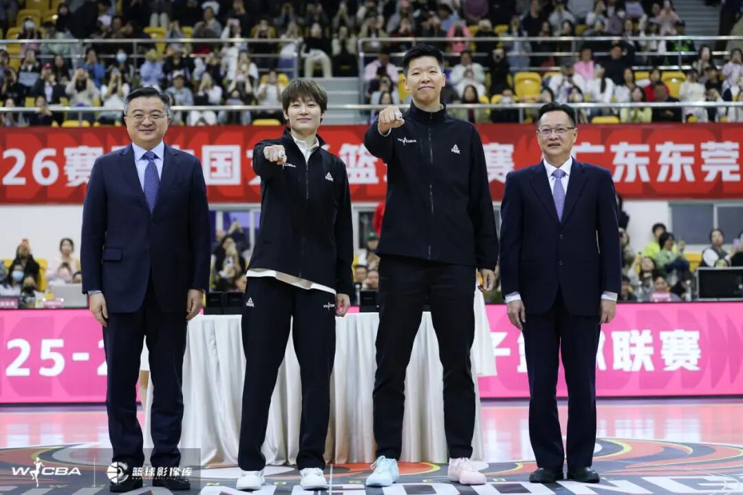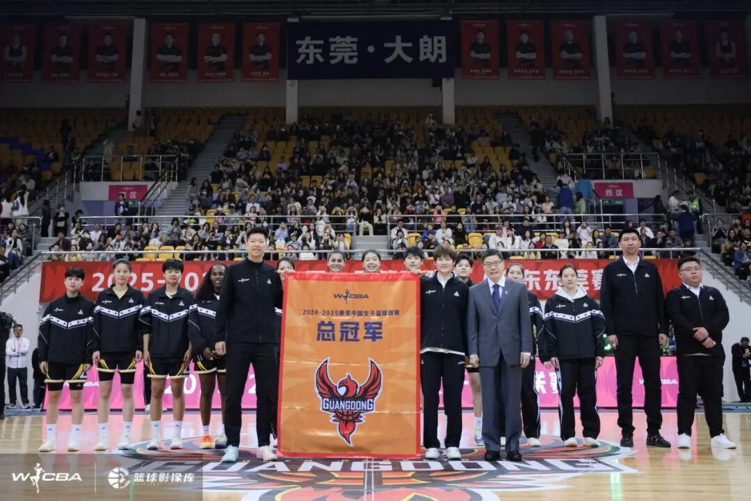 中国篮球协会主席、国家体育总局篮球中心中国篮球协会联合党委书记郭振明将总冠军旗授予东莞新彤盛,并宣布2025-2026赛季WCBA联赛正式开赛。