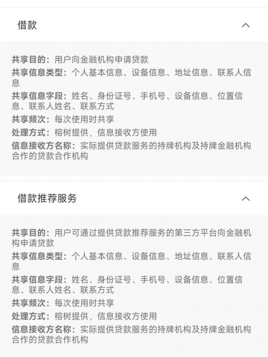 榕树贷款和钱小乐的《个人信息处理授权书》内容基本一致,同样没有第三方机构的具体名称,资金方也模糊处理,借款推荐服务方也用模糊指代。用不同手机号注册榕树贷款APP,出现的合作平台也不一致。助贷新规明确要求商业银行及互联网助贷业务合作机构应当加强金融消费者权益保护工作,规范营销宣传行为,向借款人充分披露相关关键信息,包括但不限于贷款主体等。但从榕树贷款和钱小乐的表现来看,其不够详尽的披露明显没有充分保障用户的知情权,让消费者在贷款过程中如同置身于迷雾重重的“黑箱”之中,无法清晰了解贷款相关的重要信息。