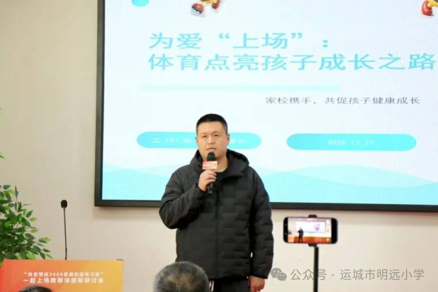当运动的汗水浸润成长的土壤,当家校社的双手握紧育人的纽带,体育不再是“跑跑跳跳”的副科,而是贯穿五育、滋养生命的成长支点。11月27日,运城市明远小学在蔡崇信公益基金会的一起上场家长参与体育计划的引领下,以一场暖意与思想交织的“一起上场”教联体创新研讨会,将“以体树人”的理念转化为可触摸的实践,让明远3000个家庭的运动习惯改变,成为区域教育改革的生动注脚。