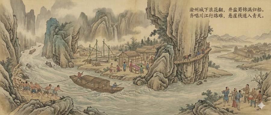 竹枝词风:流行于巴渝民间的歌谣,常以笛、鼓伴奏,描写当地风土人情。