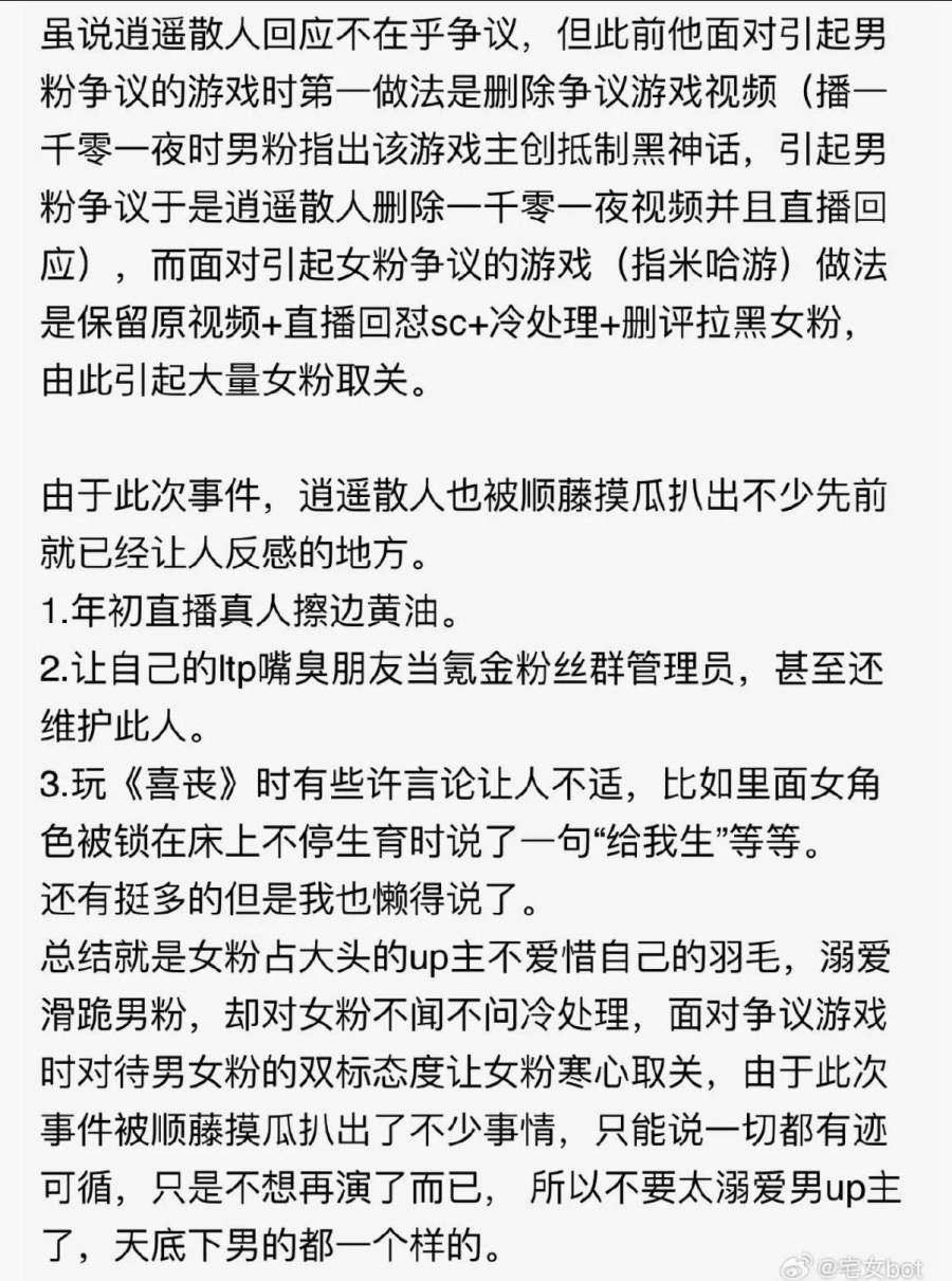 在最后一根稻草前,女性粉丝大量脱粉,同时也曝光了散人过去的大量不当言行。