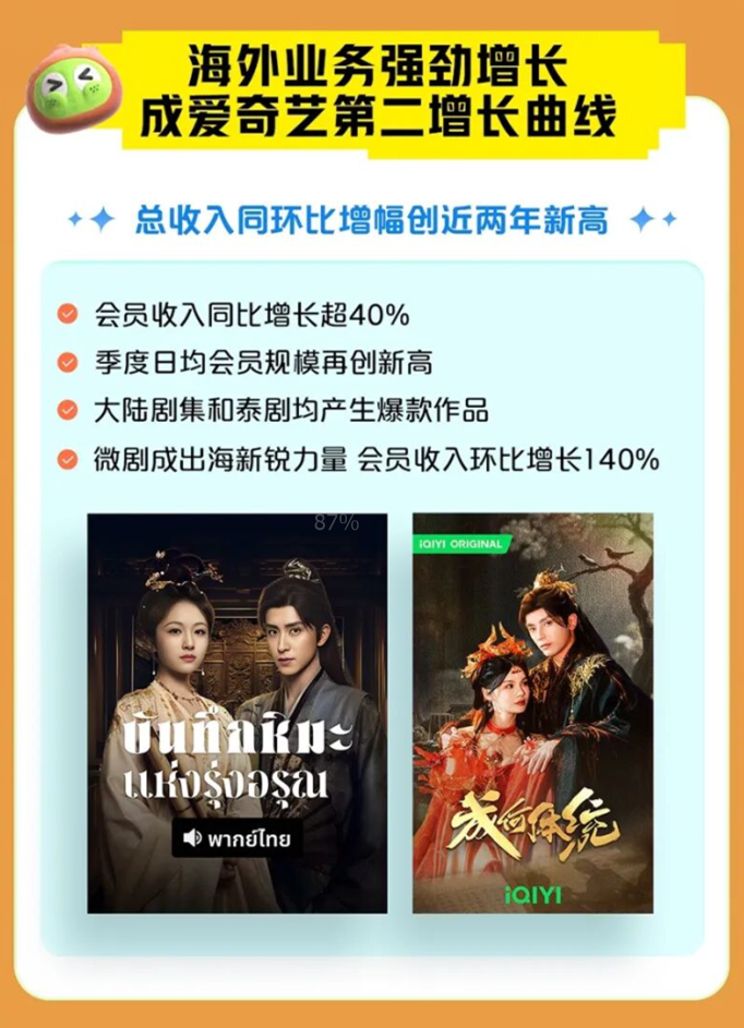 爱奇艺在2025Q3财报中明确指出海外业务成第二增长曲线