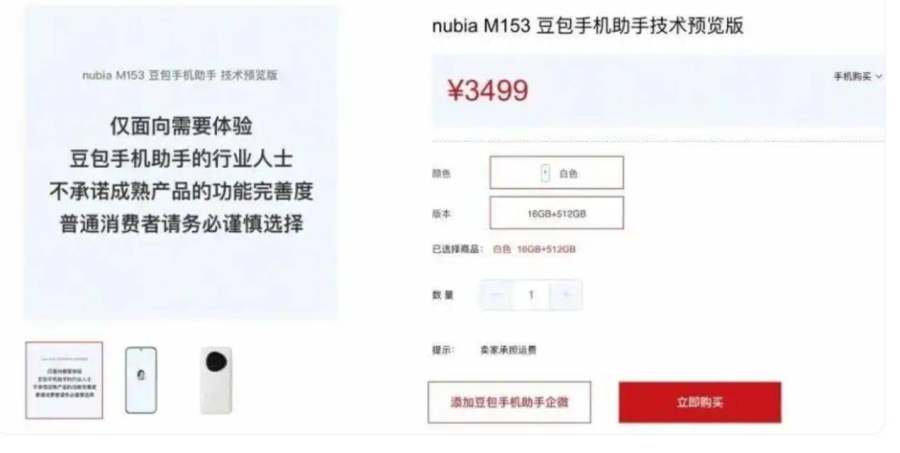努比亚M153,这款被冠以“豆包AI手机”名号的新品,在豆包手机助手官网及中兴商城上架后迅速售罄,部分二手平台甚至加价700元起,看似市场反响热烈。但深入分析,其仅有16GB+512GB一款配置,且售价高达3499元,这样的产品策略本身就充满了风险。更令人担忧的是,努比亚M153在宣传中明确提示“仅面向需要体验豆包手机助手的行业人士,不承诺成熟产品的功能完善度”,这无疑是在为可能出现的品控问题提前打预防针。