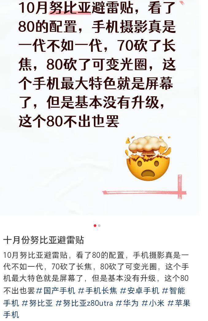 以努比亚Z80 Ultra为例,这款近期发布的“Ultra”旗舰,在影像方面的表现令人失望。用户指出,从Z70砍掉长焦到Z80砍掉可变光圈,努比亚的摄影特色正在流失。与此同时,主流品牌如vivo、OPPO、荣耀、真我等均在发力2亿像素长焦,努比亚在这方面的落后显得尤为刺眼。更糟糕的是,其影像算法也不尽如人意,远拍成为明显短板。