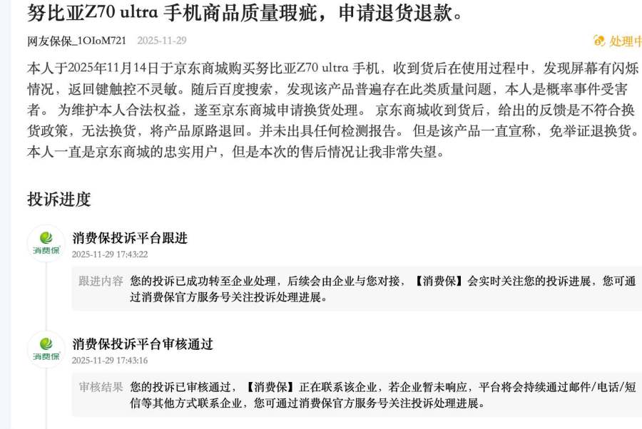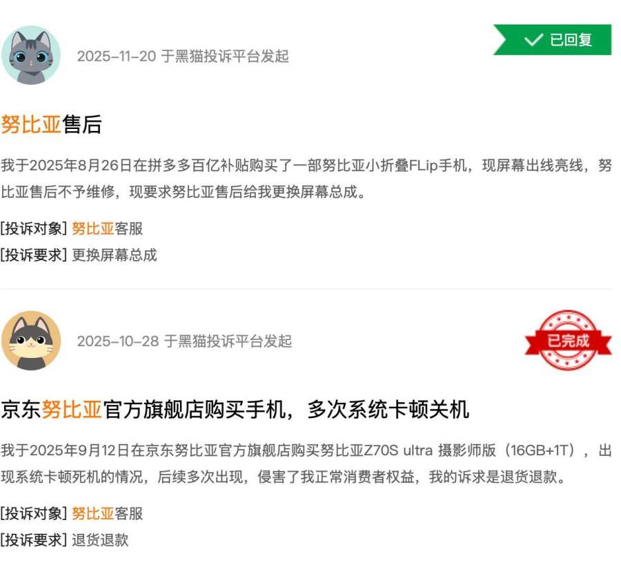 这些并非孤立案例。在黑猫投诉平台上,关于努比亚这一词条的投诉量已达1547条,集中反映在用户对产品质量、系统体验和售后服务等方面的不满。