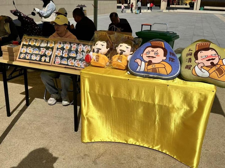 产品创新链:擦亮非遗的“颜”。针对调研中发现的“非遗产品形式单一”问题,团队提出以“数字赋能+创新设计”丰富产品体系。在数字赋能方面,可开发“3D云拜祖”平台,让海外华人通过VR技术“身临其境”参与拜祖大典;建立“黄帝故里非遗数字资源库”,用高清影像、三维建模记录剪纸、香包等技艺的工艺流程,实现非遗资源的永久保存与共享。在创新设计方面,团队结合自身专业特长,设计了多款文创产品草图,比如“黄帝图腾剪纸书签”“枣花馍造型抱枕”“岩画符号笔记本”,这些设计既保留了非遗的文化内涵,又符合现代审美和使用需求。“我们还建议景区引入‘AI非遗导师’,游客扫描展品二维码,就能通过AI语音了解非遗背后的故事,这样既降低了讲解成本,又提升了互动性。”刘乐乐介绍道。