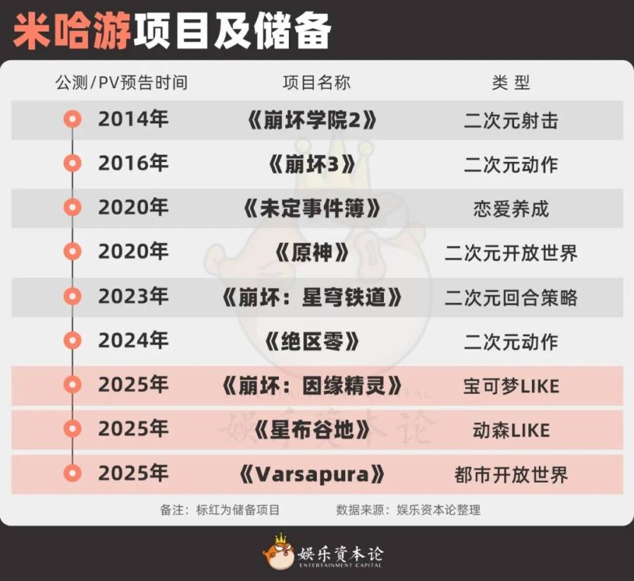 《原神》的首次PV预告,是在2019年6月释出,2020年9月份,游戏才正式上线。而《崩坏:星穹铁道》是2021年预告,2023年与玩家见面;《绝区零》则是2022年预告,2024年公测——差不多是一年发布一款旗舰产品的预告PV,并用2年左右进行铺垫和预热。