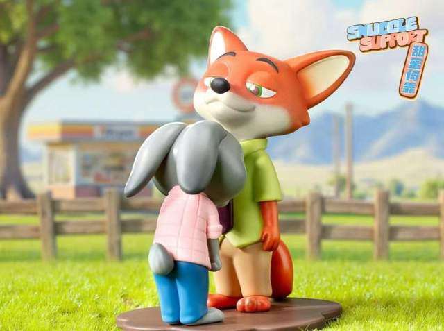 比如52TOYS,就把“狐兔”互动名场面转化为“最佳拍档”系列盲盒,其中“甜蜜倚靠”再现尼克对陷入自责的朱迪说“好了,过来抱抱”的一幕。该系列成为天猫盲盒热销榜、抖音商场公仔摆件人气榜TOP1。