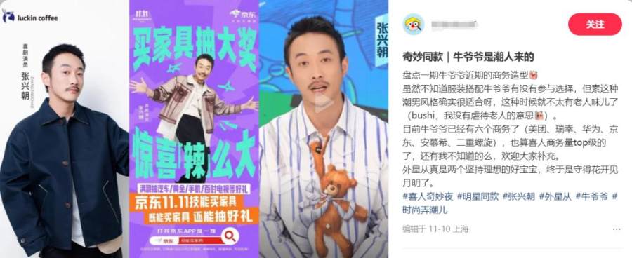 “外星从”拥有着这届喜人最多的商务,除了本就属于综艺内商务的美团、安慕希、问界等,华为、京东、瑞幸、伊利、舒肤佳也向“外星从”的张兴朝和李嘉诚伸出了橄榄枝。
