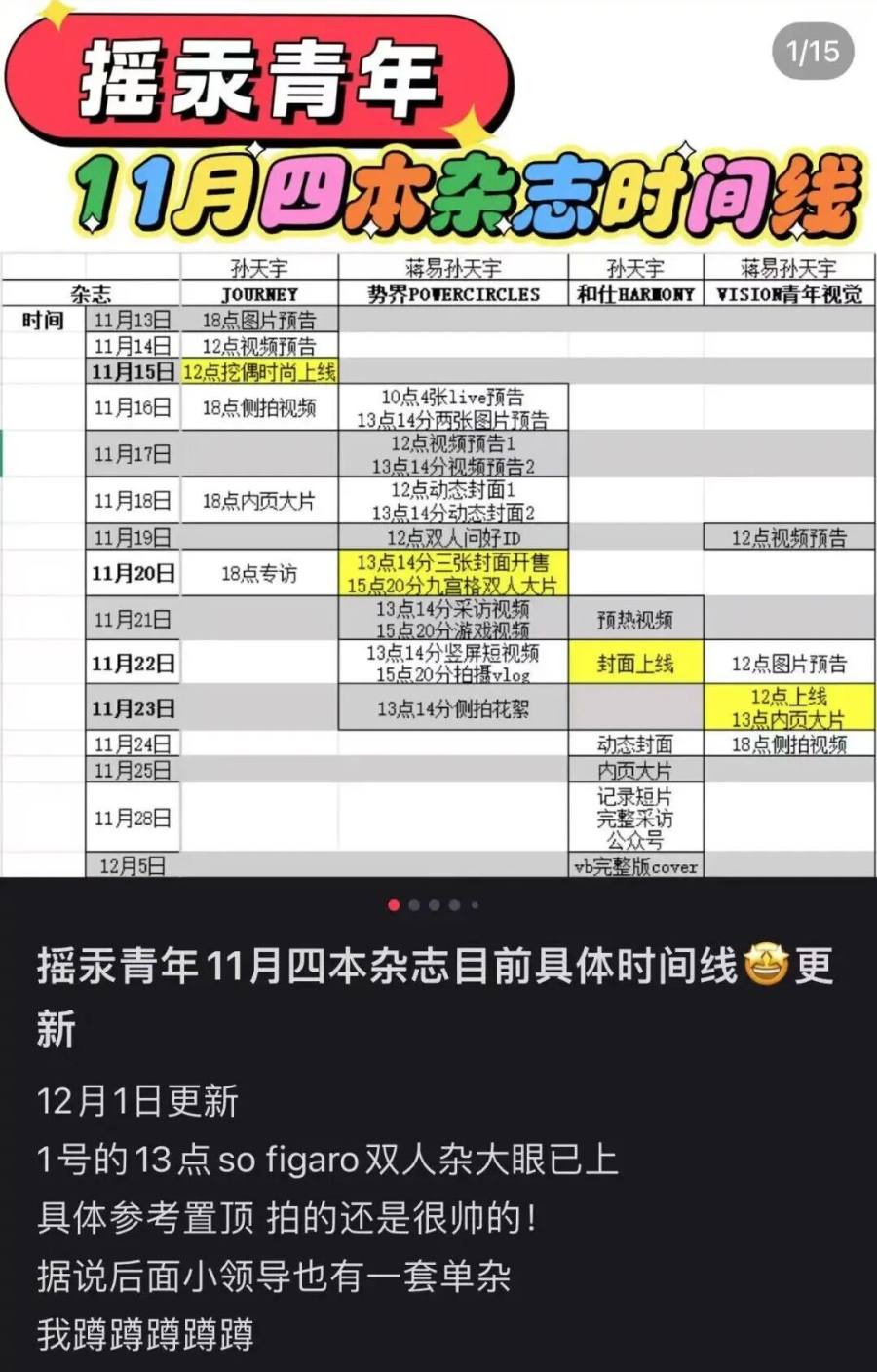 12月1日,So Figaro官方微博发布了“摇汞青年”的双人杂志的成图。这是《喜人奇妙夜》第二季开播以来,组合“摇汞青年”的第三本双人杂志。