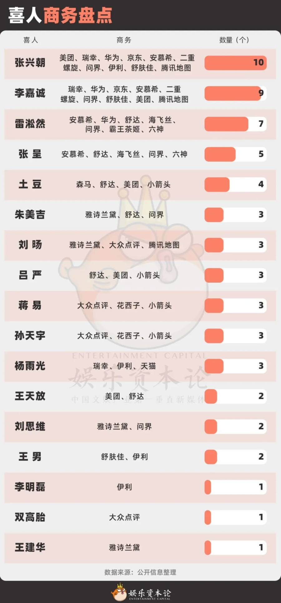 在“美帝们”的杂志之外,更多喜人接到了各个品牌的商务推广。相比起杂志这种需要直接拉动粉丝销量的产品,和喜人合作的品牌,遍布餐饮、洗浴、家居、美妆、电子等品类,通常是认知度高的国民品牌。