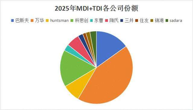 取而代之的,是万华化学这些中国欧佩克的产能高速扩张:截至2025年8月,万华福建TDI二期33万吨/年装置已建成投产,TDI总产能达到144万吨/年;华鲁恒升规划30万吨/年TDI产能。