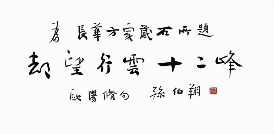 于是,著名书法家孙伯翔,为这块“幽兰石”书写“却望行云十二峰”的横幅,他早习唐楷,后专师北魏石刻,得其精髓,方峻中含清新灵动;而他以碑体为“中共中央党校”“国家行政学院”书写的校名,又广受赞誉。