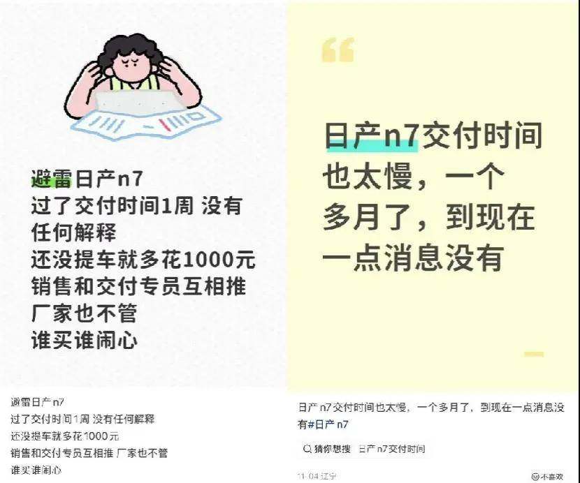 产能布局的调整失误,直接导致了N7交付周期的拉长。过去一年,东风日产关停年产12万辆的江苏常州工厂,将武汉云峰工厂转让给岚图汽车,襄阳工厂划转至东风猛士,导致N7在市场需求激增时无法及时满足交付需求。社交平台上,“提车等待超一个月”“销售与交付专员互相推诿”的投诉此起彼伏,严重损害了品牌形象和消费者信任。