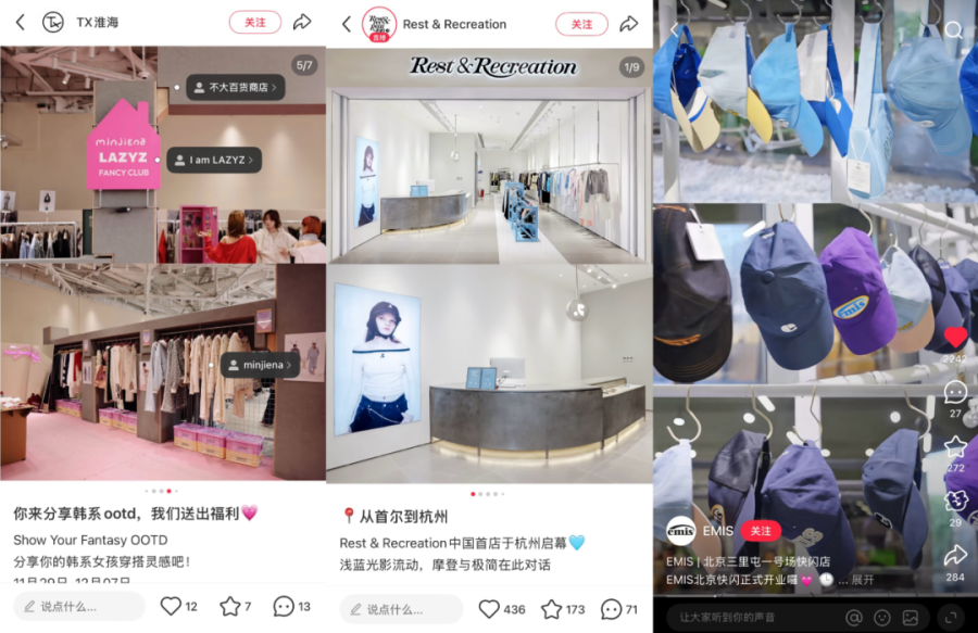借力本土成熟的代理公司或企业,这些新锐的韩国服饰潮牌,大多遵循着一套清晰、可复制的路径。即率先入驻小红书、天猫等国内主流线上渠道,再通过快闪店的模式测试市场,紧接着接连在一二线城市的核心商圈落地线下实体店,主打一个“快、准、狠”。
